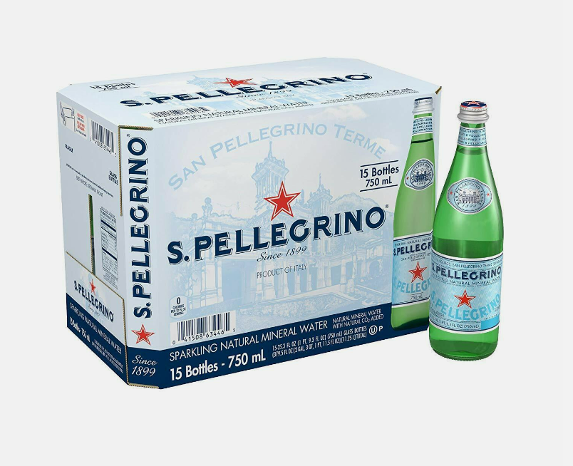 San Pellegrino Sparkling Natural Mineral Water 750ml glass bottles, 24 Pack